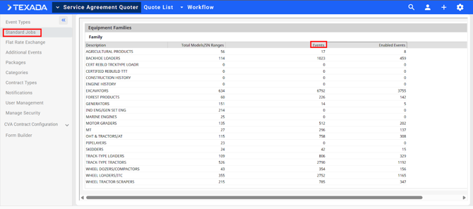 Standard Jobs and Flat Rate Exchange will appear empty until Event Types are created.