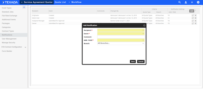 - Additional Events(Fourth – requires Categories and Contract Types to be completed