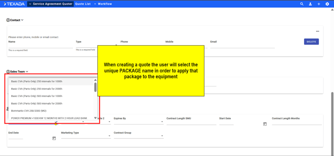 - Select the form name (Quote, Equipment, or Equipment List)