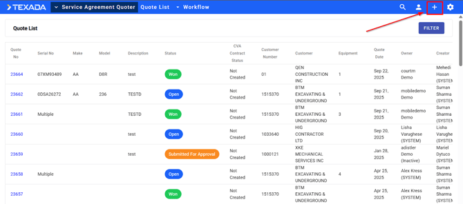 - Click the plus sign (+) in the top right corner to create a new quote