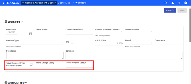 When checked, travel costs are rolled into each PM event and hidden from the customer |