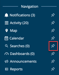 The search will move to the top left corner of your screen as a small quick-nav tab. Quick-nav tabs for pinned searches are smaller and have no names. Instead, they have an icon to identify them.