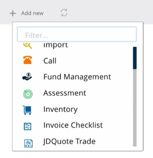 - You can scroll through the menu of available “entities/record types,” such as inventory, call, or account. Or you can type a keyword into the filter box to find the type of search you want to perform.