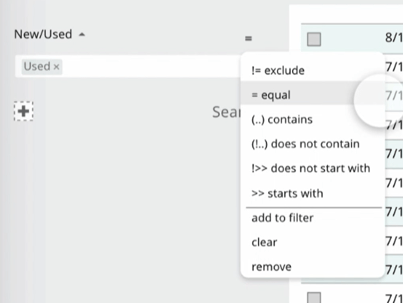 - = Equal: (Default Option) You are filtering results that have the words or classifications you entered into the field.