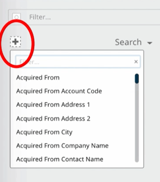 - A dropdown will show you the types of fields/data points available to us as filters in your search.
