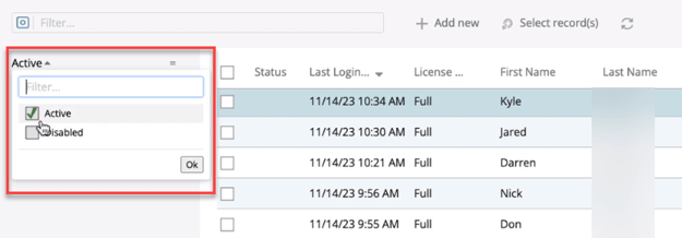 - Toggle between Active or Disabled users to refine your list.