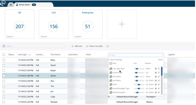 An audit allows you to see any data that’s missing for any user. It also allows you to filter by, say, Record Manager type or Branch, to identify users in different locations or with specific permissions.