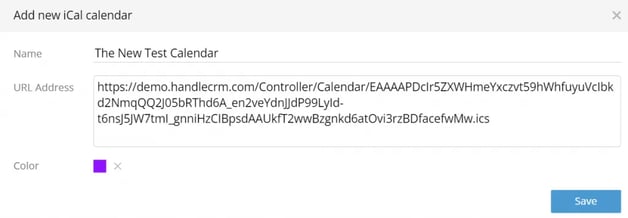 Handle’s ‘My Calendars’ allows you to add calendars from external sources like Google or Outlook.