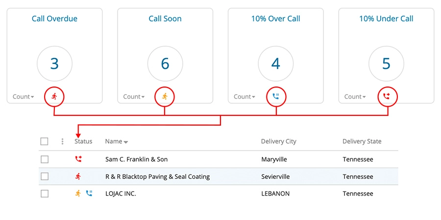 Handle’s Dynamic Status indicators uses color-coded icons to make your data easier to read and faster to act on.