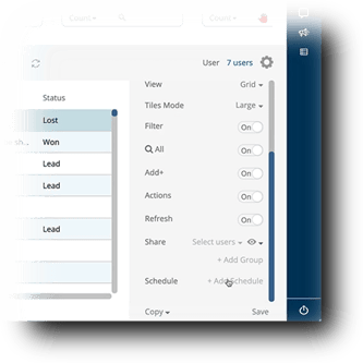 - In the Search view you want as a report, click on the Settings Gear icon