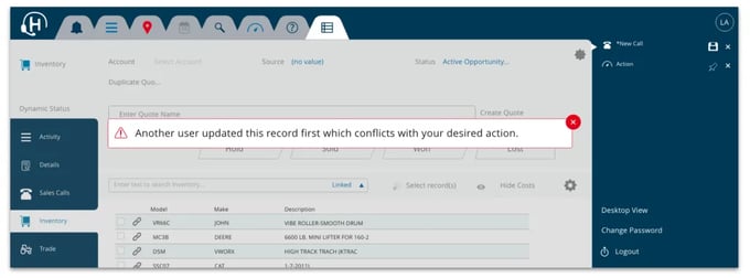 Even if multiple sales people are viewing the equipment in Handle, or another business system, at the same time.