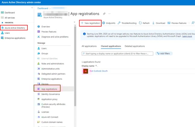 2) Navigate to create a new app registrations