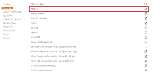 10.1) In Security, ensure Mobile access is checked