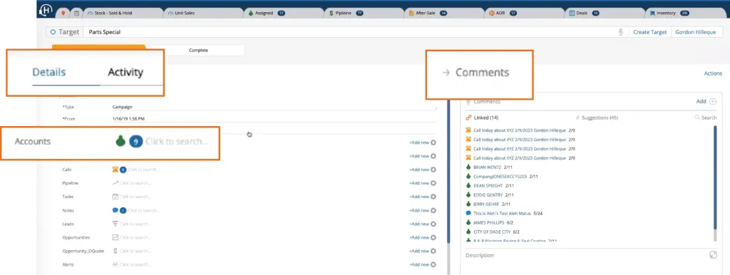 For example, if you ran a month-long campaign, you can automatically pull in additional whole goods, parts, service, or sales that were made to those accounts in that time period to see if they’re associated with the campaign.
