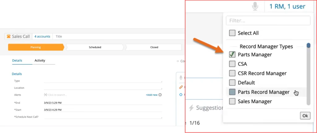 With this option, you’ll assign the campaign activity to a specific role, or record manager type, such as the Parts Manager on each account.