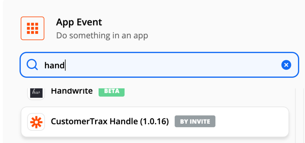 8: Set your “Action.” Type “Handle” into the search bar and select CustomerTrax Handle.