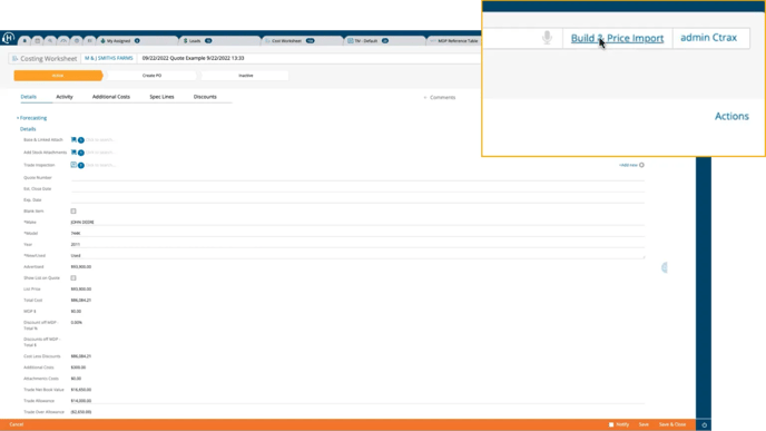 In the right-hand corner, click the Build & Price Import button.