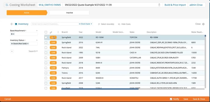When you’re searching for a unit to link to the quote you’re working on, all you have to do is find the unit you want to add and click on “link.”