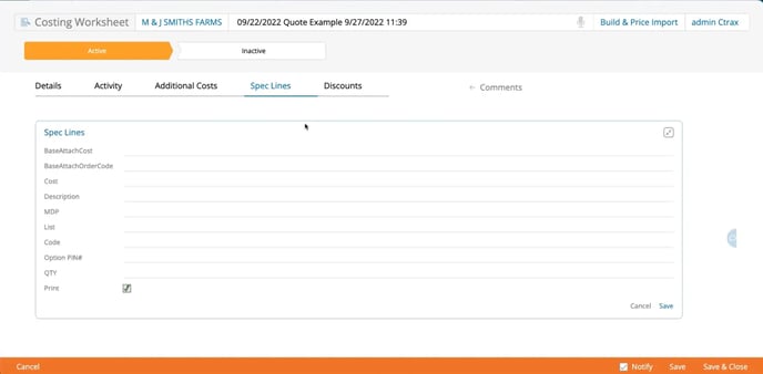 We can add spec lines that go with a piece of equipment. These values are pulled automatically from your inventory, so you don’t have to worry about manually entering them.
