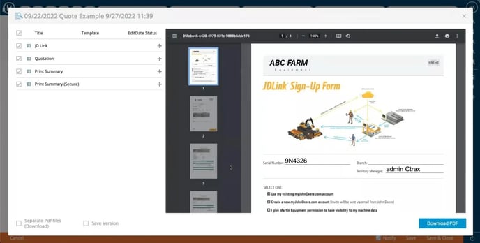 Before you print or email your quote to your customer, you can preview all the details in PDF view.