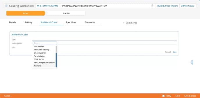 Users can easily produce professional documents for their customers using this feature. They only have to fill out a few required fields in a costing worksheet, and the system works the formulas to calculate the appropriate pricing.