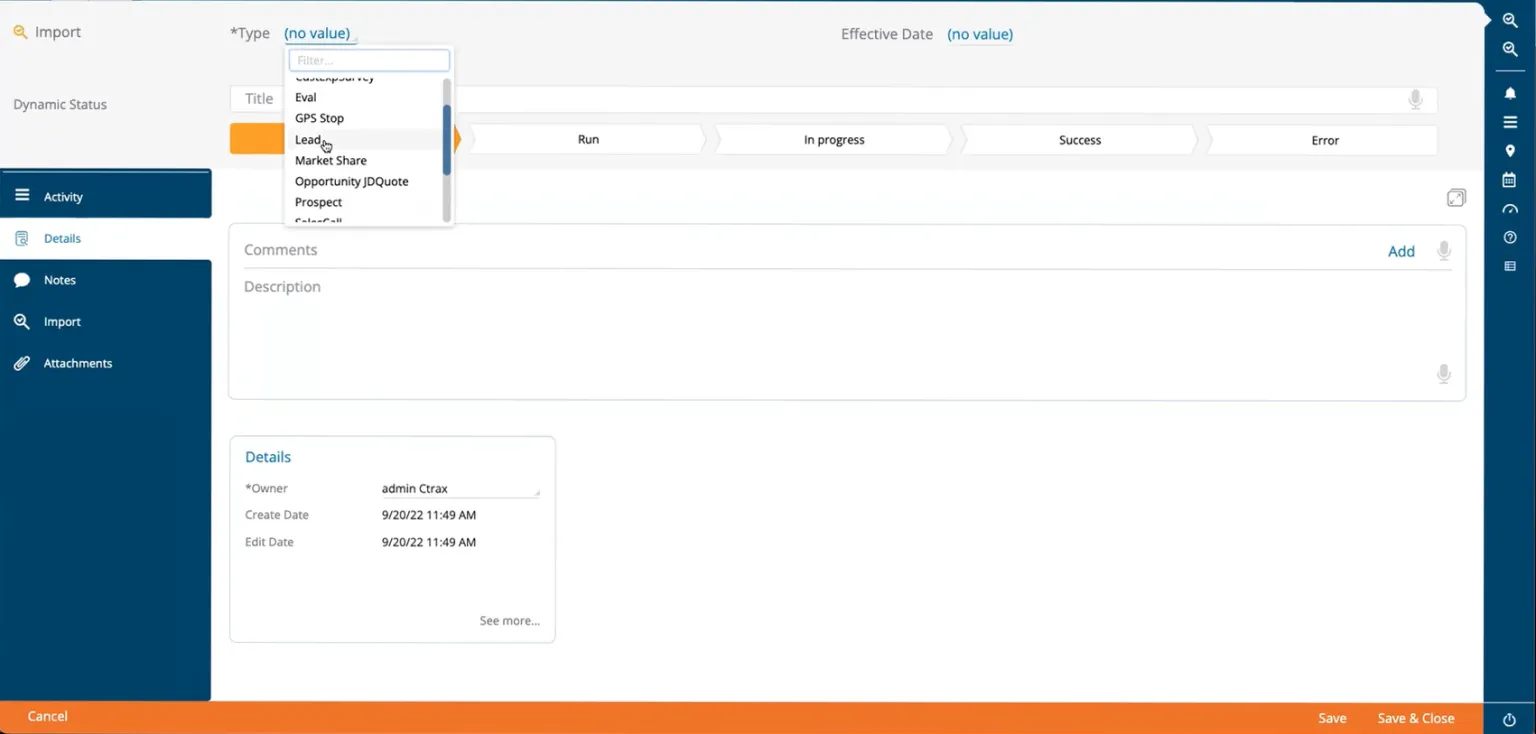 When you see the attached files, you can select “run” and then “save.” The import then starts automatically.