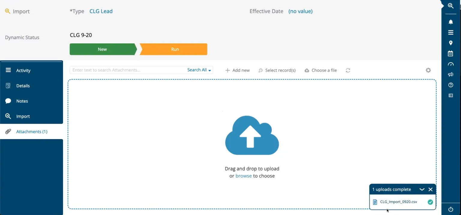 When you select CLG lead, there’s a set of predetermined rules in the background that determine what the engine will be looking for in the document you’re uploading and what it’s going to do with those leads.
