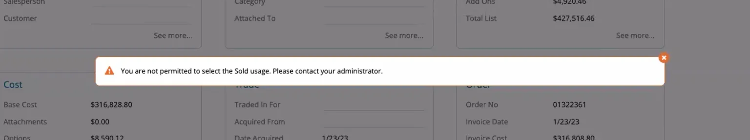 Then, if someone tries to perform an action they aren’t allowed to do, the system will show messages like this that say, “You’re not permitted to [do whatever].”