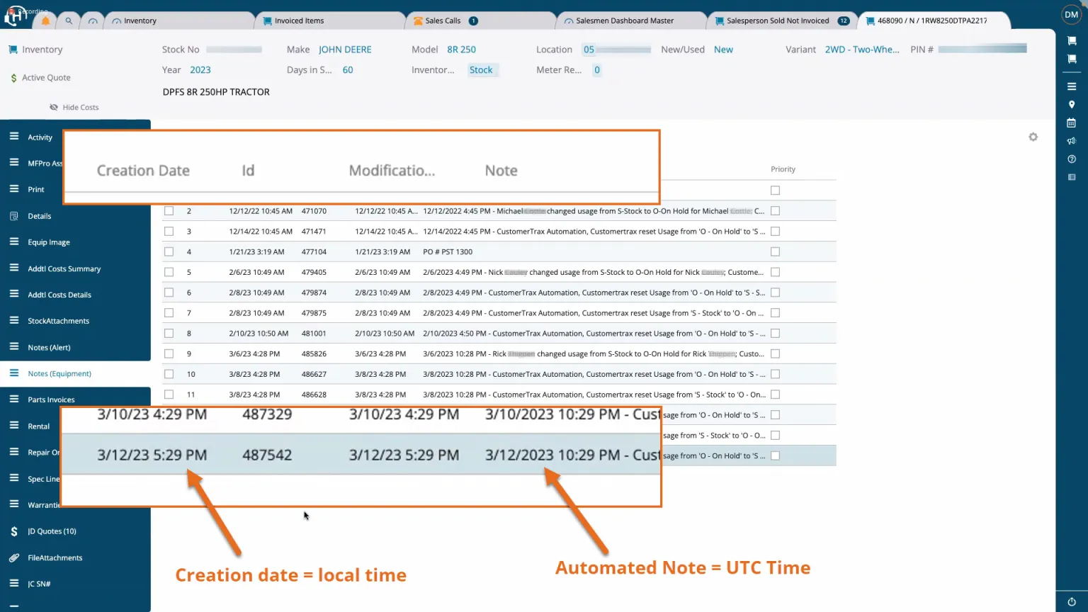 Dealers often struggle with logging activities when they happen in different time zones. To ensure your records are accurate, we timestamp dates and times in both the local time and UTC time.