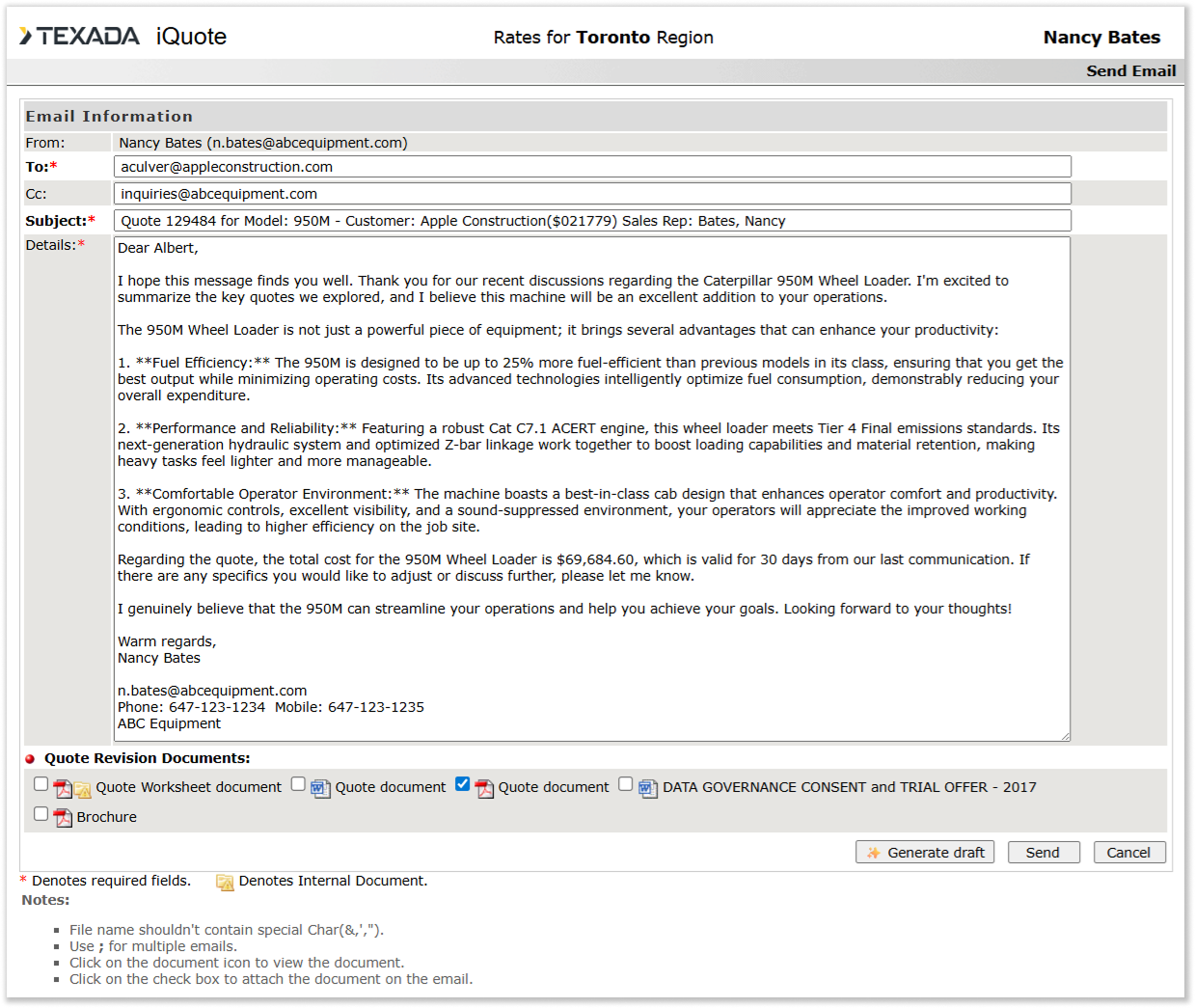 A powerful new feature has made its way on to Texada iQuote: the ability to generate quote summary emails with the click of a button!