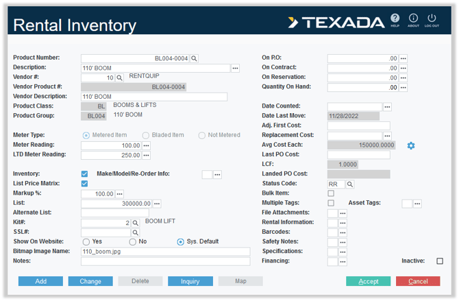 Inventory Control → Rental Inventory |