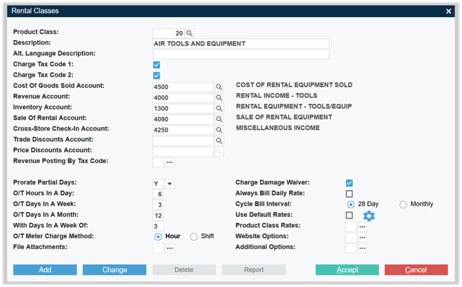 System Maintenance → Configure System Settings → Accounting → Rental Classes |
