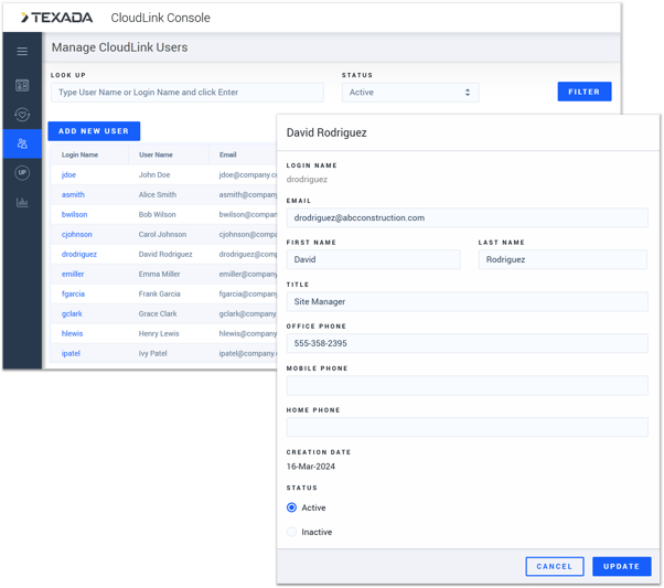 For customers using the Texada Identity Service, it is now possible update the names and email addresses of users in CloudLink Console! This feature allows you to update users’ information in cases where an employee changes their name, or their email address or User Principle Name changes.
