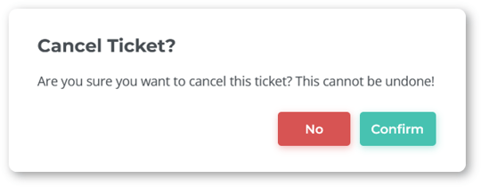 Clicking this button will cause the following pop-up to appear, asking you to confirm that you want to cancel the Ticket. Click “Confirm” to cancel the Ticket.