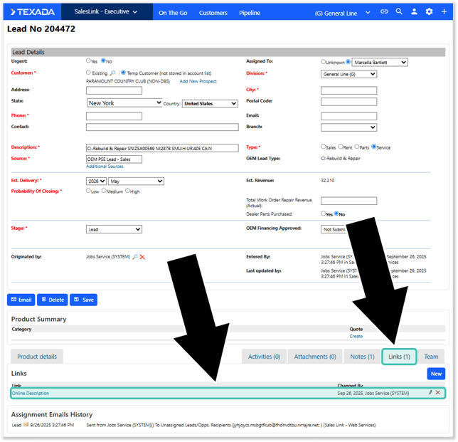 When publishing a new PSE, Caterpillar will often include additional information about the PSE via an external URL. Previously, this URL would only be included in the Opportunity’s notes as plaintext when the PSE was imported into Equipment CRM. As of this update, this URL is now published to the Opportunity’s Links section instead, making it much easier to access!