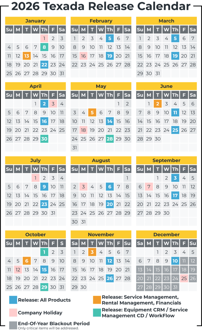2026 Texada Release Calendar
