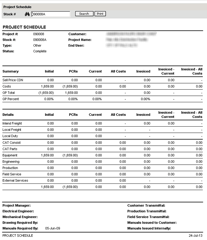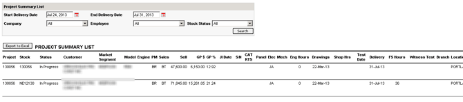 This report is the complete details of a Project. It can be filtered by Start and Ending Delivery dates as well as by Company, Employee and Stock Status.