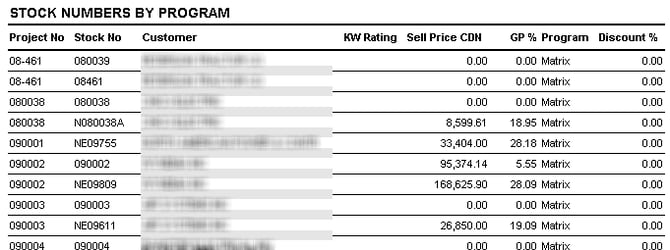 This report creates a list of stock numbers by discount program. The drop down menu allows you to choose the criteria you’d like to search.