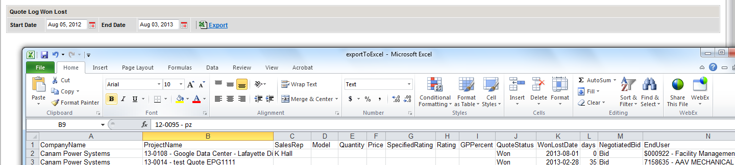 iMACS provides multiple Quote Log reports based on different variables that are exported to EXCEL:
