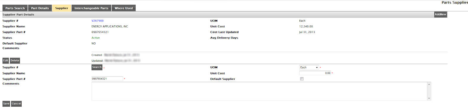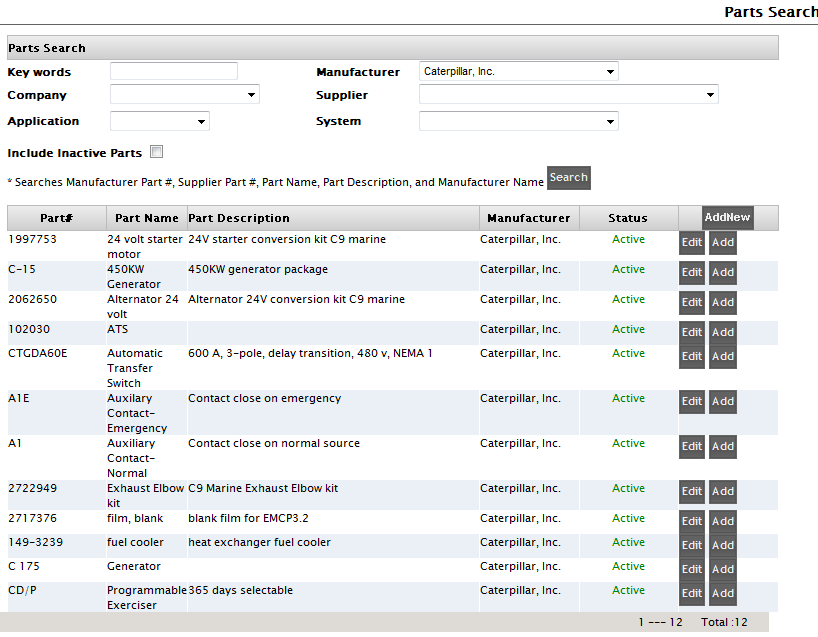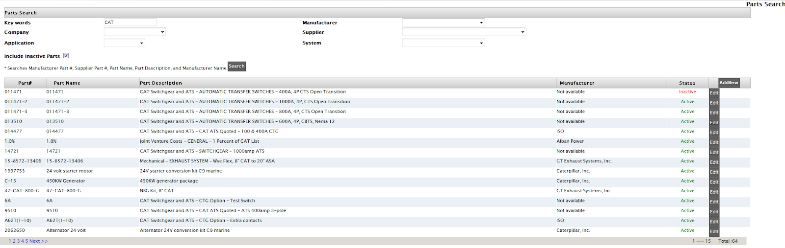 The first step when adding or editing a part is to ALWAYS do a thorough search. Filter by Key Words, Manufacturer, Supplier, Application or System, and if you do not find your part be sure to check the Include Inactive Parts option before you add a new and possibly duplicate part.