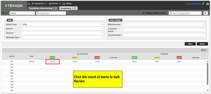 In Condition Monitoring Portal (CMP), alerts can be cleared or reviewed in bulk. To do this, follow the steps below.
