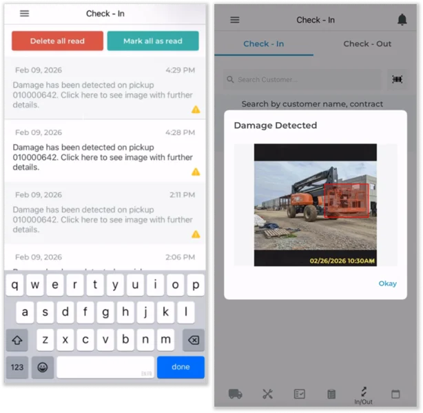 Identifying equipment damage at the right moment—before it becomes a dispute, missed charge, or service delay—is one of the biggest challenges in rental operations. AI Damage Detection brings automation and consistency to this process by comparing equipment condition at check-out and return, helping your team quickly spot new damage and take action.