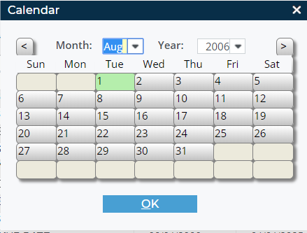 - Locate the entry you need to set the date range controls for, and use the From Date calendar menu to select the earliest date in the date range.