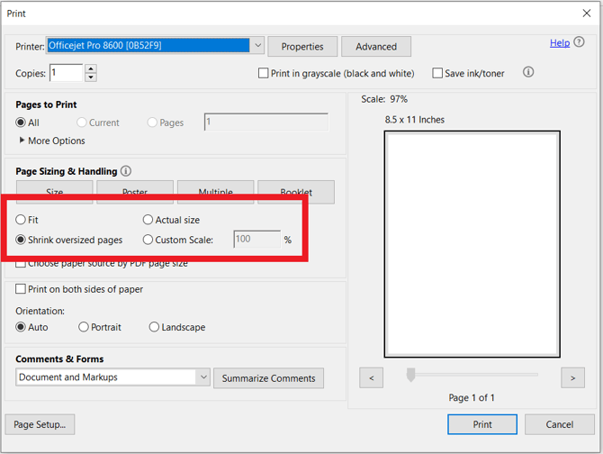 Layout formatting can also be affected by automatic scaling in some software platforms like Google Chrome or Adobe Acrobat. After the check form is produced as a digital PDF on screen it is then physically printed to a printer, with a similar confirmation screen: