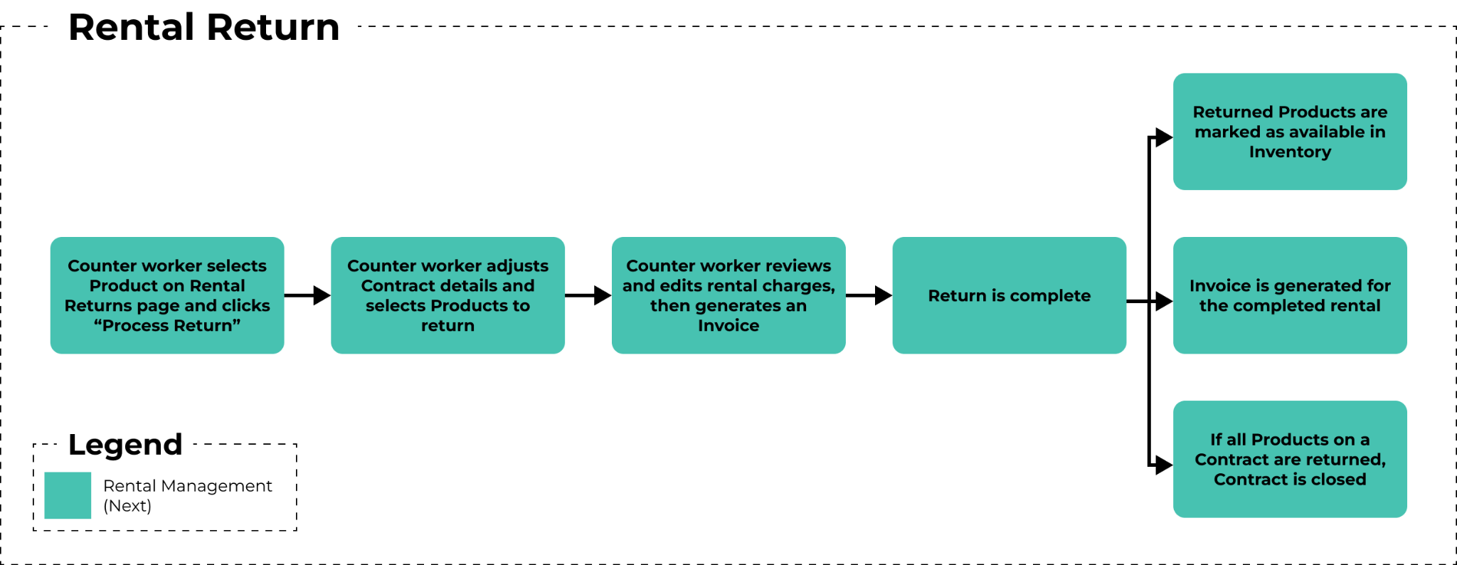 The workflow for Rental Returns. Click to view the full-size image.