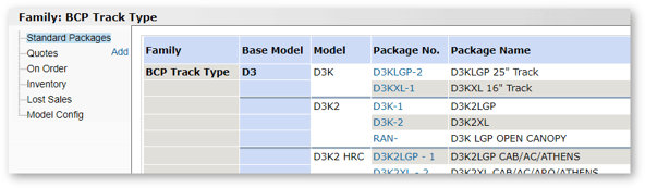 Beginning a quote from the MA menu allows the sales rep developing the quote to choose from a list of machines as they would be ordered from the factory if an inventory or on-order unit is not suitable for the customer’s purposes.