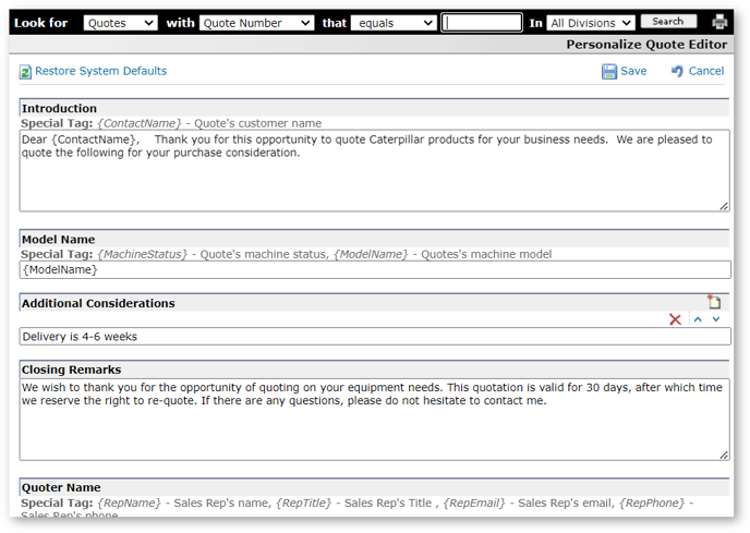 In the Links menu, select [Personalize – Quote Editor]. This allows users to personalize the cover page of every quote document they create. Making changes to this page will only affect the user.