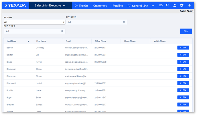 - Use the drop-down menus at the top of the page to select a Region, Division, or Rep Type.