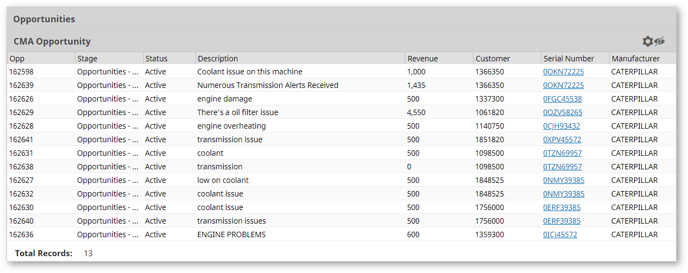 Click on a number in the Current Status of Leads section of the CMA Activity Scorecard to navigate to the Opportunities table and view details about those opportunities.