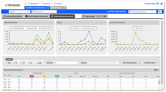 An overview of the CMA Activity Scorecard in the Texada Condition Monitoring Portal.